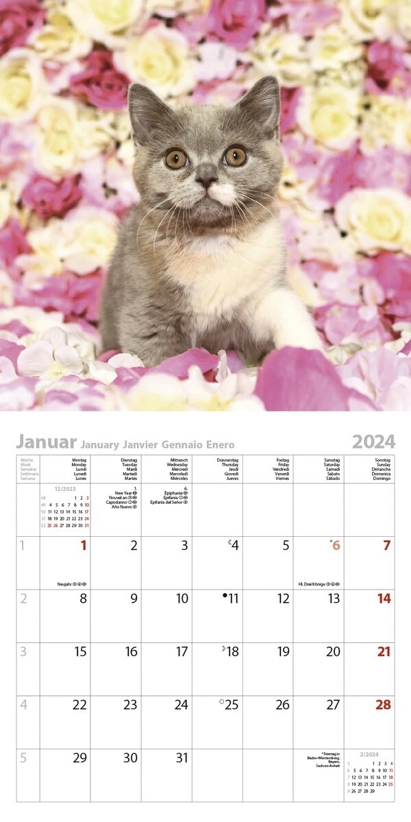 CALENDARIO 2024 GATTI verticale cm30X30 CATS korsch verlag | eBay