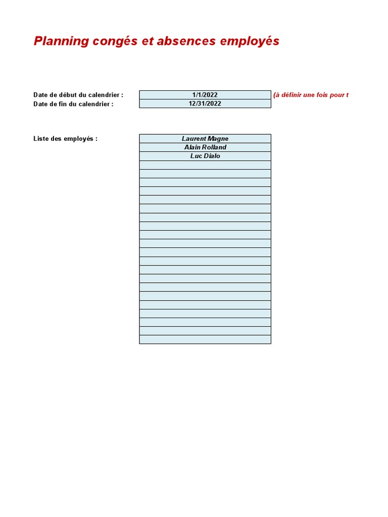 Modele Excel de Planning Conges Gratuit | PDF