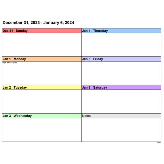 Wochenkalender 2024 Querformat 2 Spalten in Farbe Etsy Schweiz